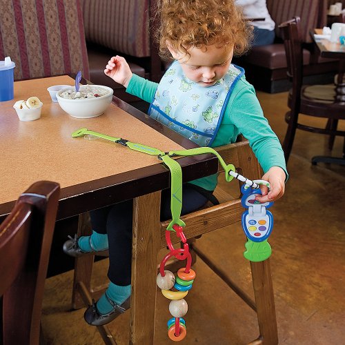 No more picking up dropped toys! And no more buying separate toy straps for different pieces of baby gear, because our universal toy tether attaches to them all. The secret: we gave it both a strap (for attaching to strollers and car seats) and a suction cup (for anchoring highchair trays and tabletops). Made of non-toxic plastic, so won't harbor germs like fabric toy straps do. Holds up to two toy links at once. For ages 18 months and up. Designed by OneStepAhead! Attaches to strollers, highchairs, car seats, play yards, and shopping carts, turning any small toy into a can't-lose stroller toy or highchair toy Most toy tethers are made of fabric, which retains fluids and bacteria because it's porous in nature. Our toy tether is made of non-toxic plastic, so it's non-porous and easy to clean. BPA-free, phthalate-free, lead-free, and latex-free Toy tether measures 15"L x 2"W Hand wash with warm soapy water
