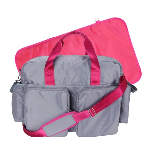 Short information about Trend Lab Deluxe Duffle Style Diaper Bag, Gray and Magenta Pink: