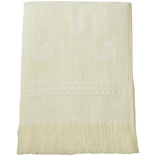 Brief explanation of Large Soft Cream Acrylic Baby Shawl / Blanket - Hearts & Squares Design, 48" x 48":
